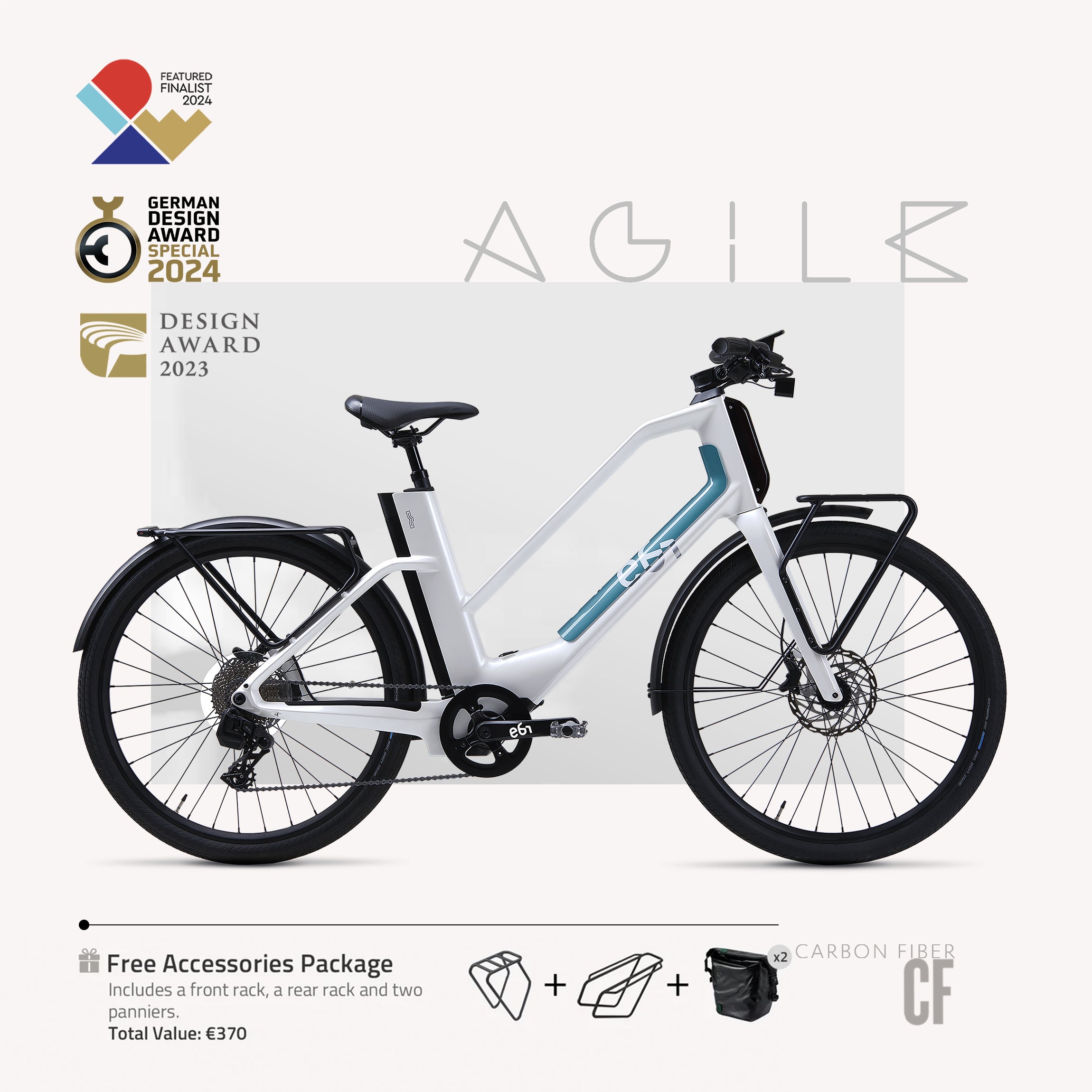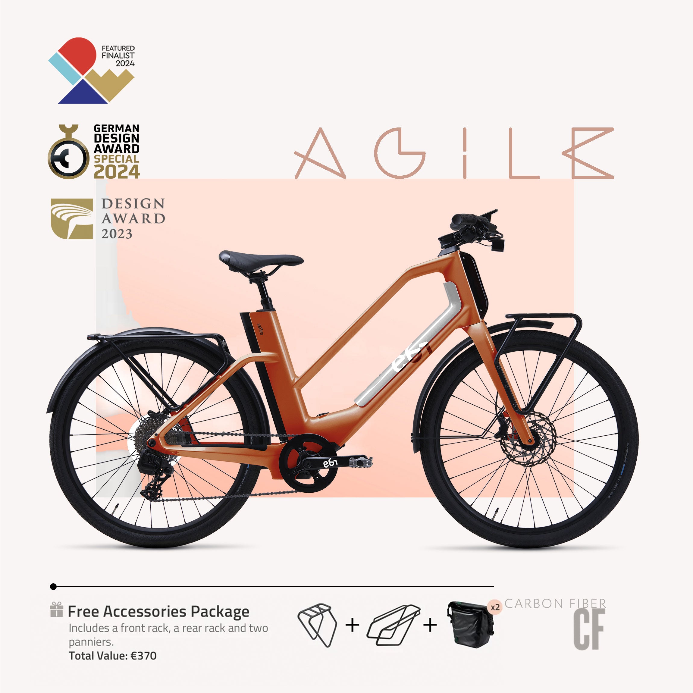 Jedes AGILE-Fahrrad wird komplett mit einer hochwertigen Tasche, einem stabilen Gepäckträger und eleganten Schutzblechen geliefert und bietet so alles, was Sie für ein außergewöhnliches Fahrerlebnis brauchen.