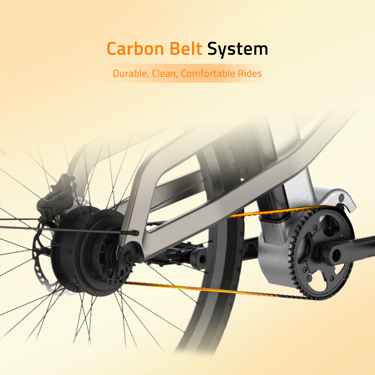 The Möbius’s mid-drive motor delivers precise pedal-assist and seamless power, making climbs and starts effortless. Paired with the carbon belt drive, it ensures balanced handling, stable control, and a safer, more comfortable urban ride.