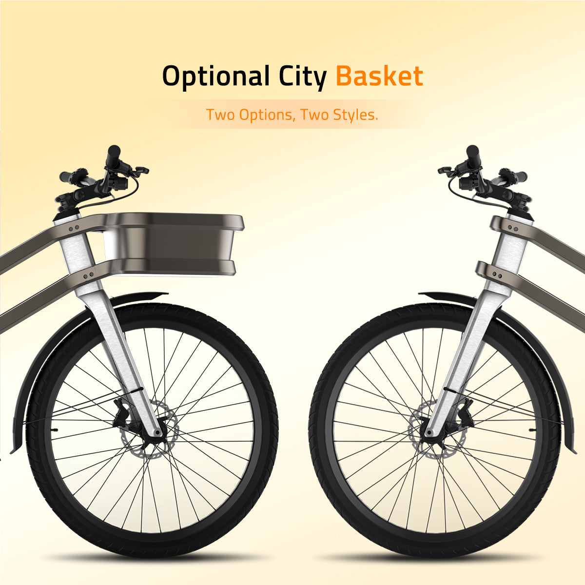 With its asymmetric mid-frame and distinctive rear, the Möbius frame reimagines the urban eBike. The seamlessly integrated seat tube, battery, and motor create a clean, modern silhouette, while the refined head tube and built-in front basket deliver everyday practicality wrapped in unmistakable style.